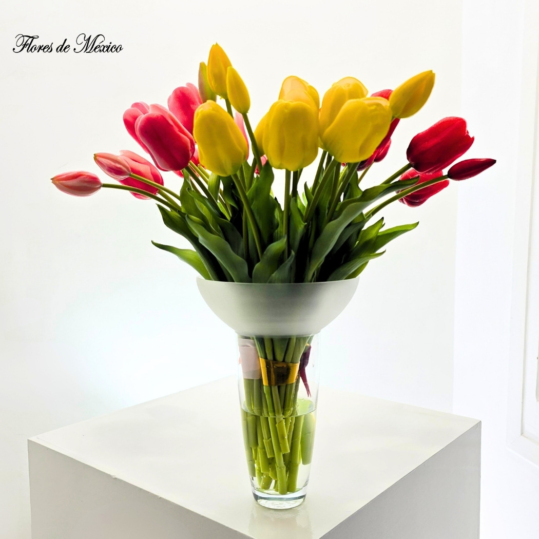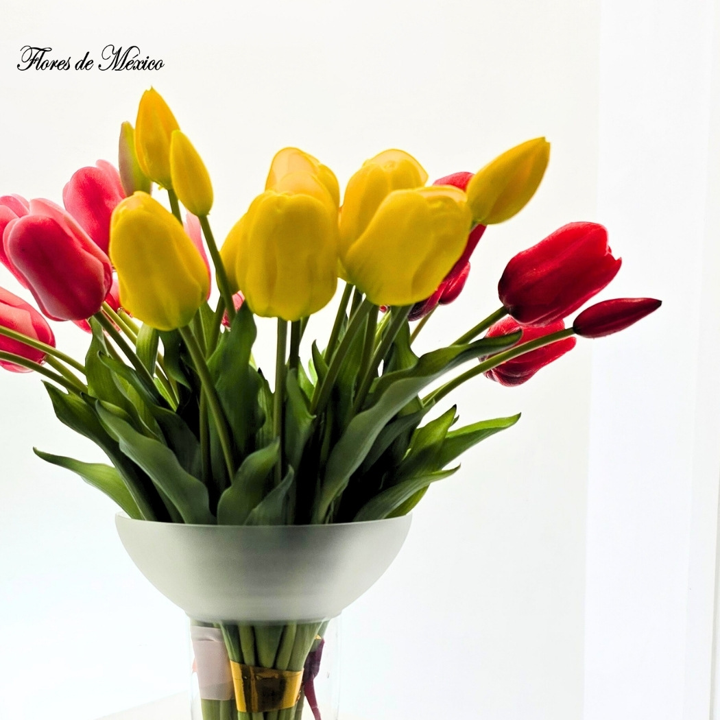 *Los tulipanes se entregan en botón para su mayor duración, les tomará aproximadamente 24 horas en tomar su total color.