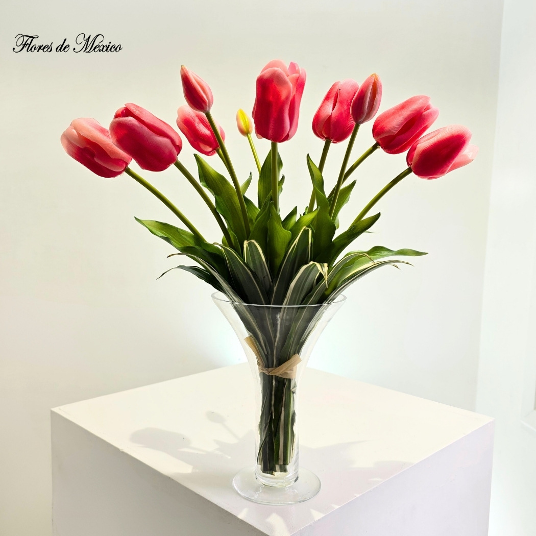 *Los tulipanes se entregan en botón para su mayor duración, les tomará aproximadamente 24 horas en tomar su total color.