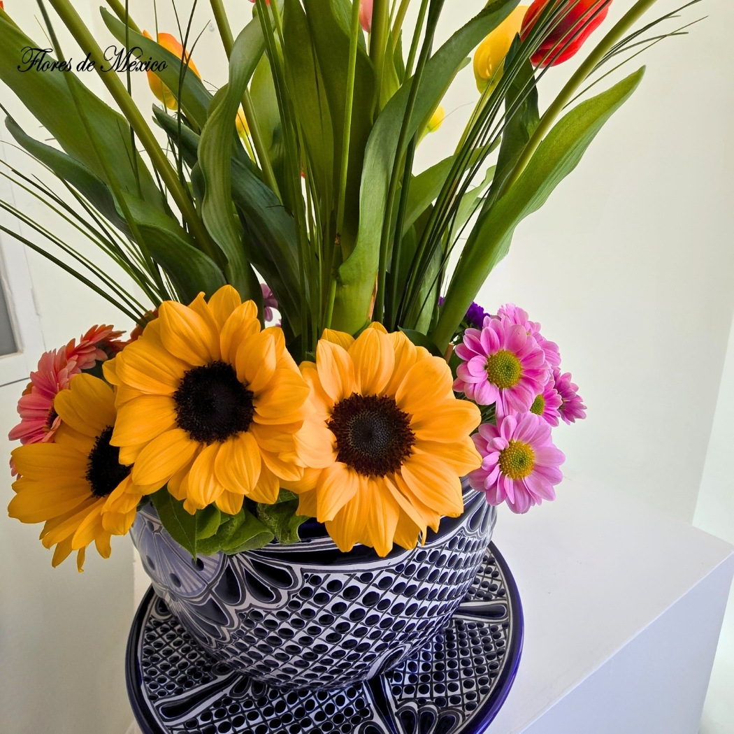 Este arreglo es ideal para celebraciones, regalos memorables o decoraciones que busquen transmitir vitalidad, optimismo y estilo.