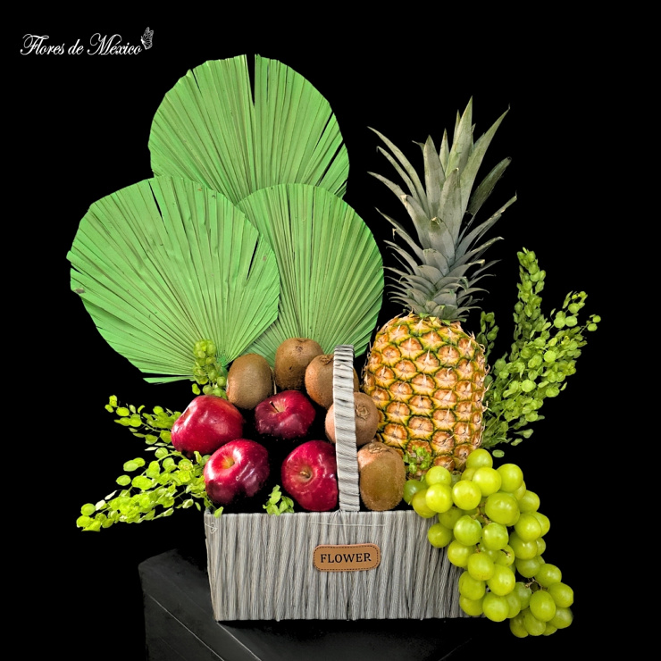 Nota: Las flores y frutas pueden variar ligeramente según disponibilidad, manteniendo siempre la estética y calidad del arreglo.