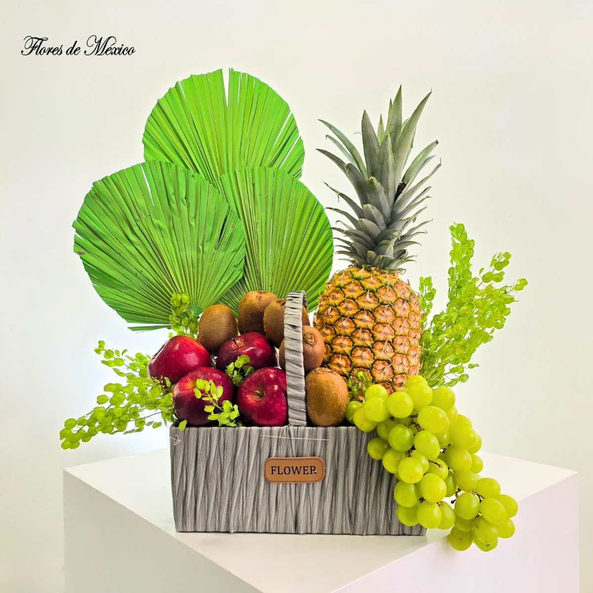 Nota: Las flores y frutas pueden variar ligeramente según disponibilidad, manteniendo siempre la estética y calidad del arreglo.
