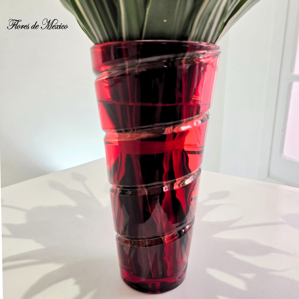 - Florero de vidrio rojo con diseño moderno y acabado brillante