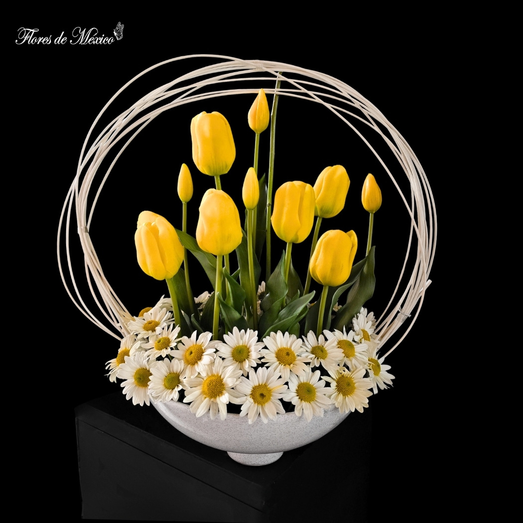 Este arreglo floral evoca la alegría pura y la frescura de un amanecer primaveral.